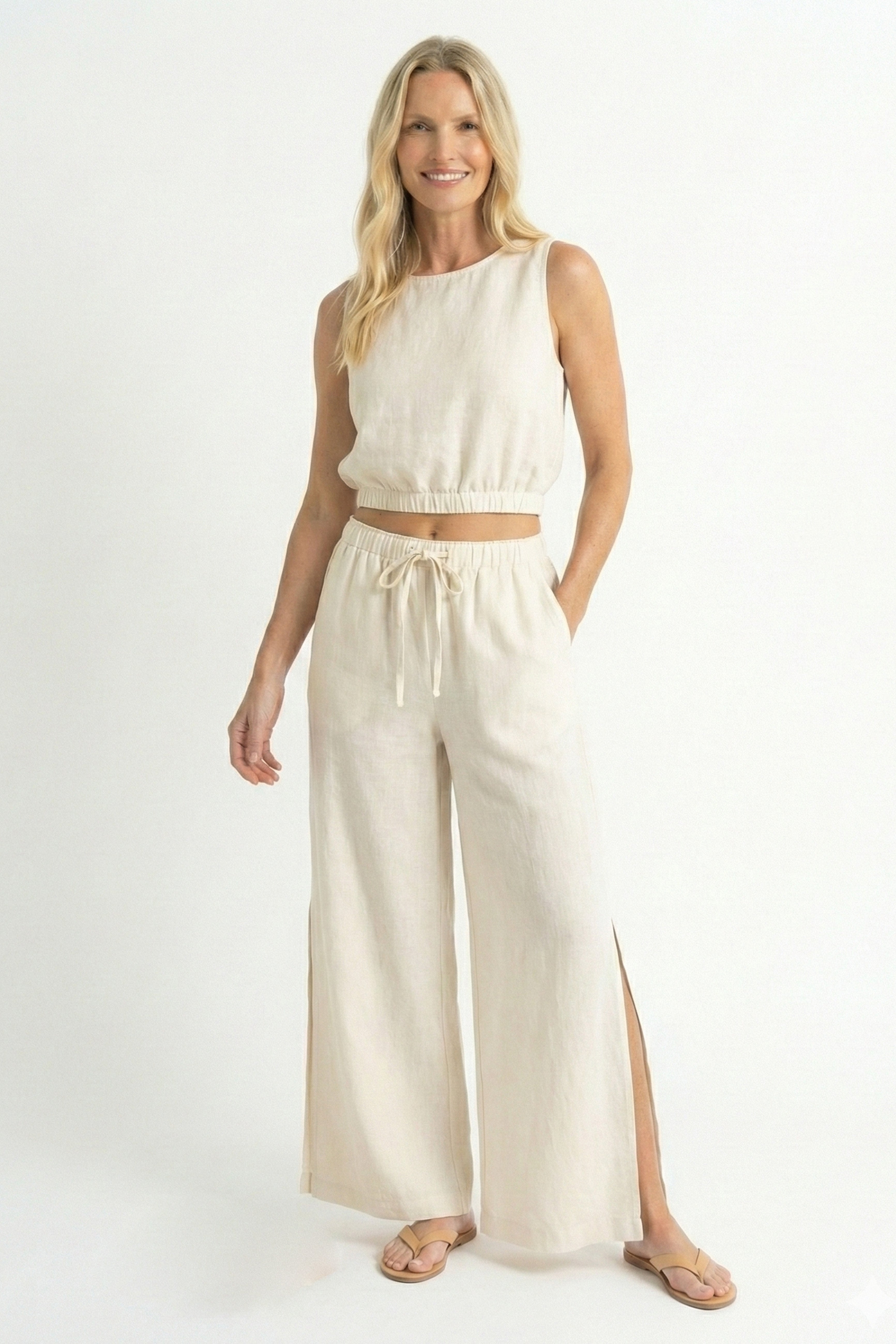 Wide-leg solid-colored pants with elastic waist and side slit that flatter the legs with light movement. Perfect for a polished and comfortable resort outfit in warm destinations. Category Fit PANT Materials 87% VISCOSE 13% NYLON