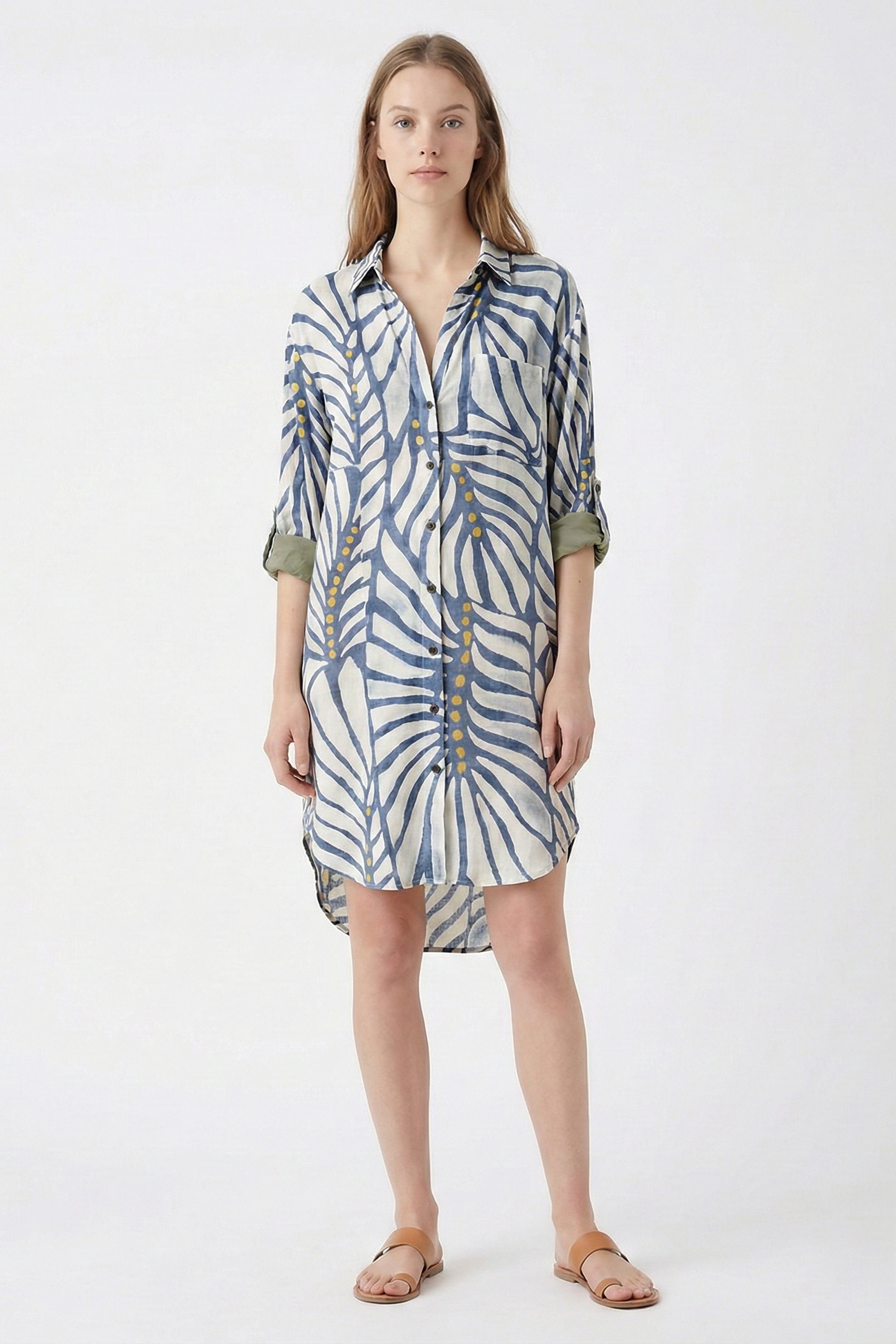 Shirt dress with a fluid drape that flatters the figure with natural elegance. The print adds character for a sophisticated and versatile resort look. Category Fit SHORT Materials 100% VISCOSE